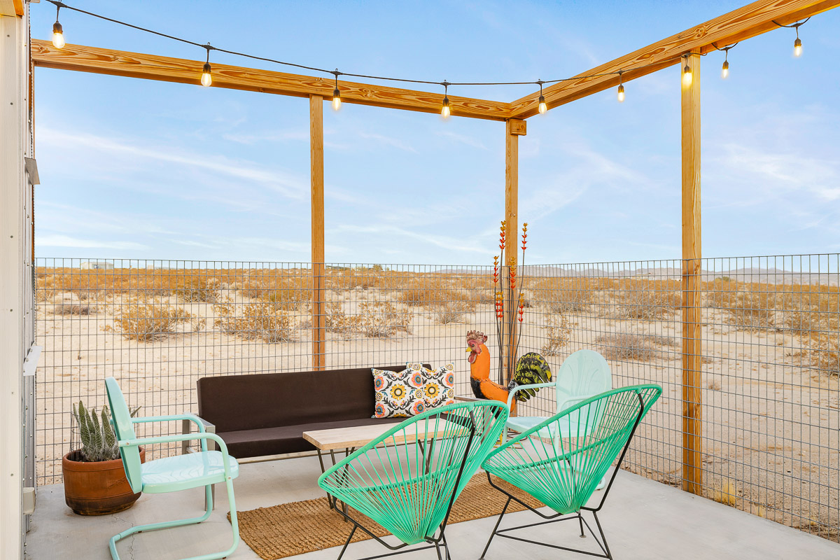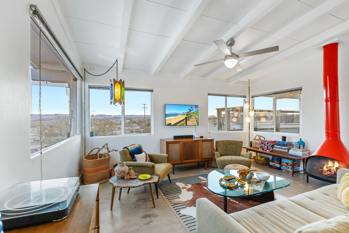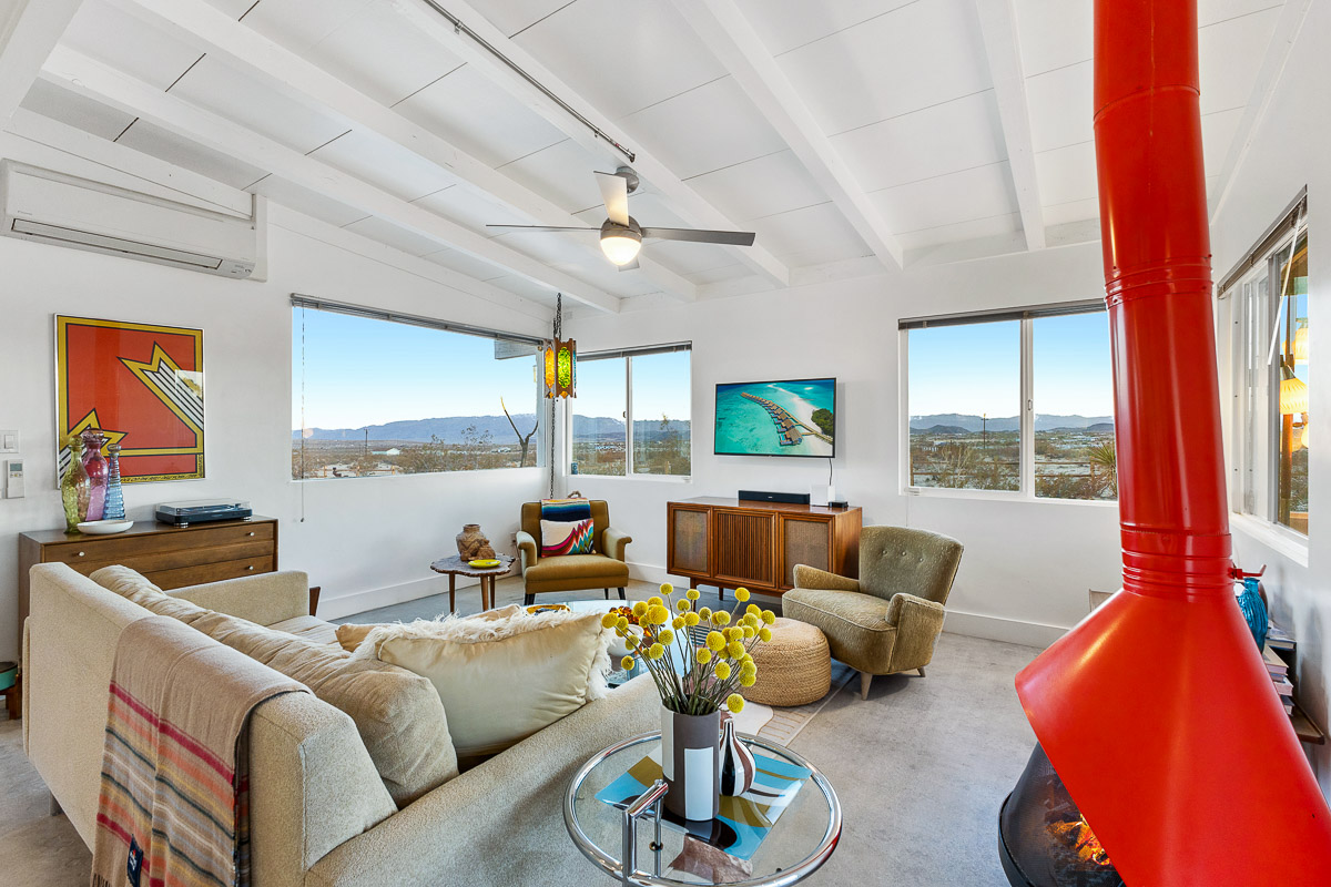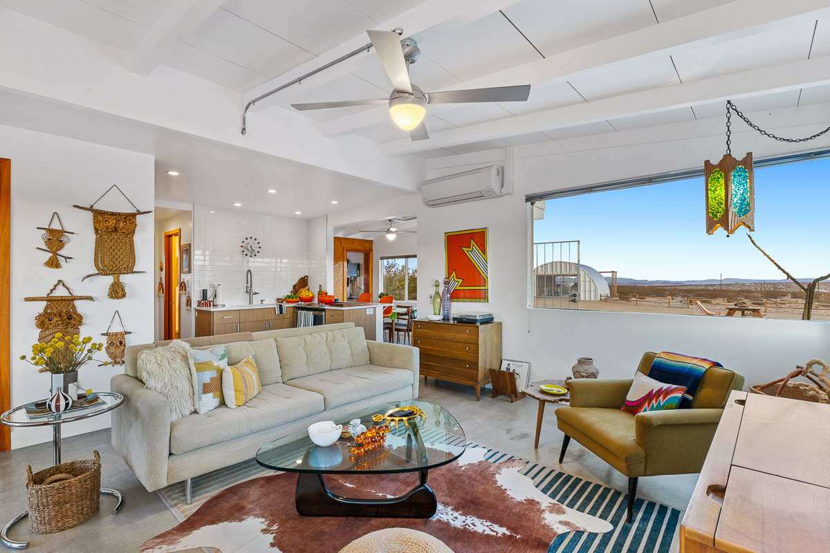 Perfectly positioned on 5 acres to capture breathtaking views of the San Jacinto mountains this 2 BR, 2 BA retreat offers an authentic desert living experience just minutes from Joshua Tree National Park.