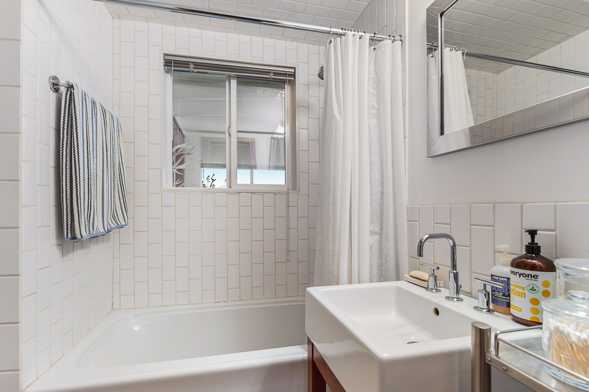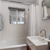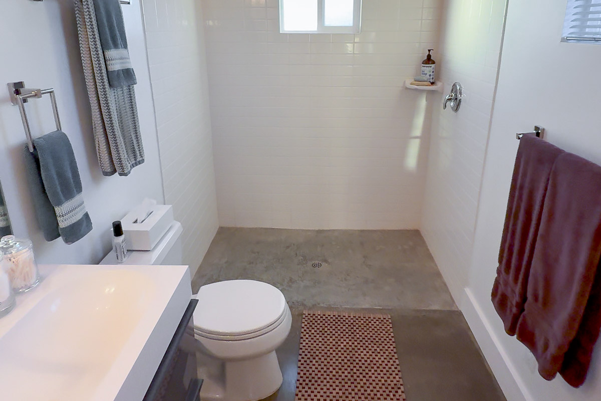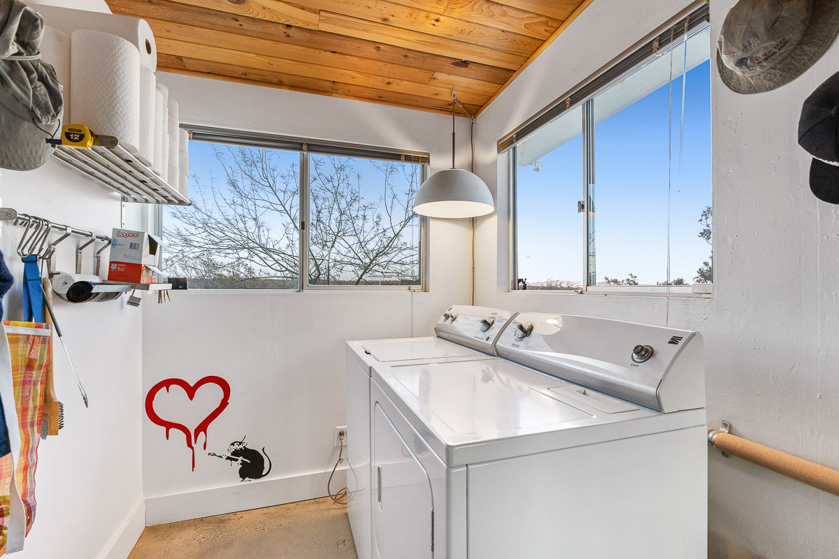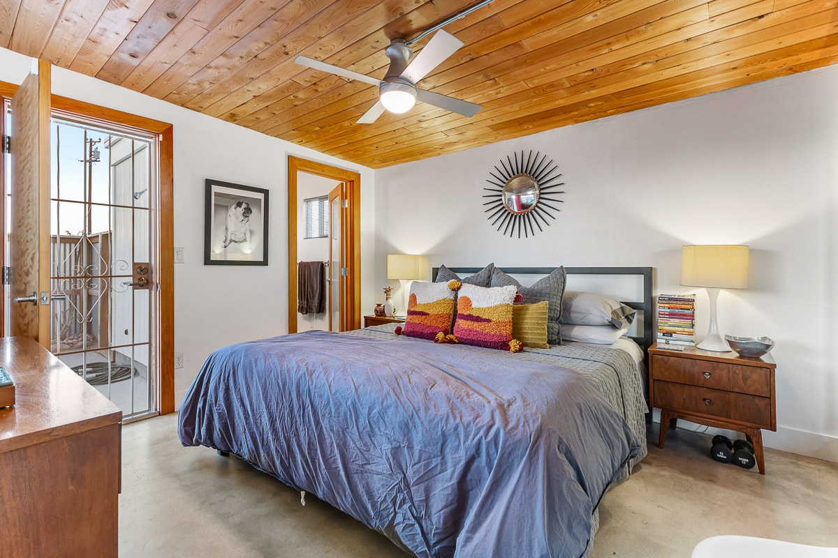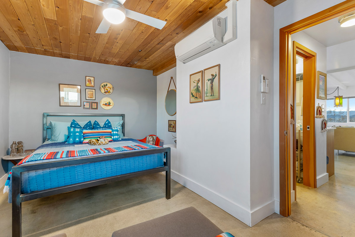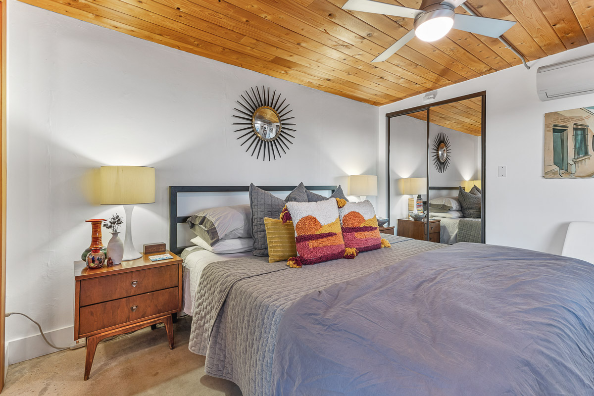 Both bedrooms, with cedar line closets, serve as peaceful sanctuaries with the primary featuring an en suite bathroom showcasing a walk-in shower and outdoor patio access.